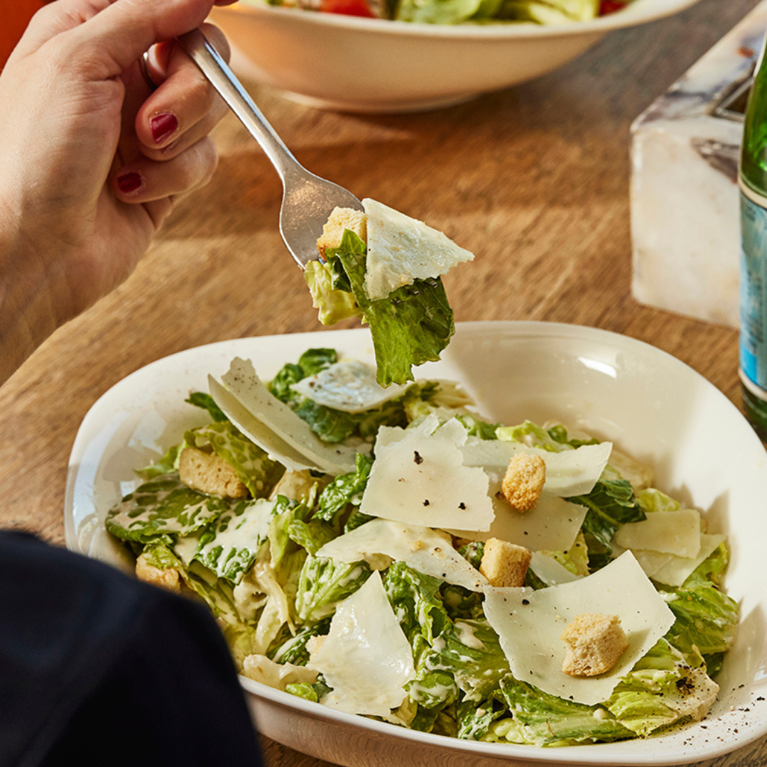 Fresh romaine lettuce, crunchy croutons, Italian hard cheese.